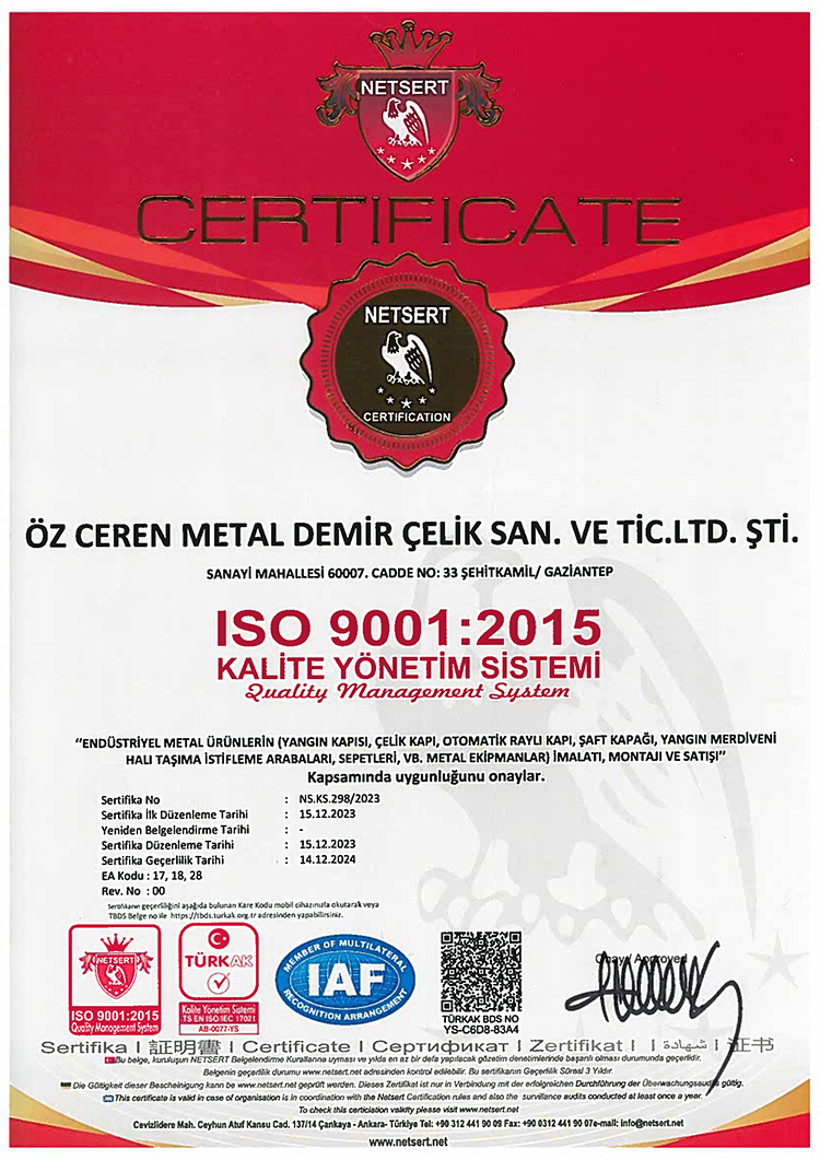 Özveri ile verdiğimiz hizmeti belgelendirdik ve siz değerli müşterilerimizin hizmetinde olmaya devam etmekteyiz.